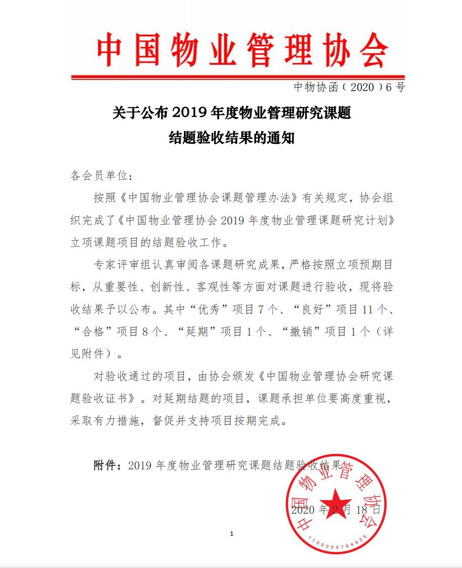 前不久,中國物業(yè)管理協(xié)會公布了2019年度物業(yè)管理研究課題驗收結(jié)果,在榮獲優(yōu)秀獎的7個課題中,“醫(yī)管家”申報提交的《醫(yī)院物業(yè)管理中客戶滿意度評價體系的建立與探索》是唯一一個醫(yī)院物業(yè)類獲獎課題。
