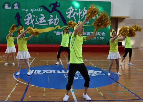 本屆運(yùn)動(dòng)會(huì)最有話(huà)題的要算新增比賽項(xiàng)目啦啦操,這其中有讓人感動(dòng)的第二運(yùn)作區(qū)大叔大媽們的傾情演出;也有在將近40度高溫下帶著厚厚的海綿小雞頭套跳的搞笑的《小雞小雞》;也有平時(shí)嚴(yán)謹(jǐn)認(rèn)真、文質(zhì)彬彬的朱博士讓人大跌眼鏡的處女秀;更有妖嬈風(fēng)與搞怪風(fēng)舞蹈互不服輸?shù)亩肺琛麄兊难莩鲎屨麍?chǎng)運(yùn)動(dòng)會(huì)高潮迭起,笑聲不斷。
