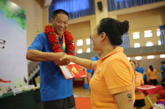 跳繩、踢毽子、接力跑、籃球、羽毛球,男單、女單、混雙、小組賽、團(tuán)體賽,每一項(xiàng)比賽都異常緊張和精彩。近40度的夏天,最爽的事情不是坐在空調(diào)房里吃西瓜,不是到游泳池里暢游,不是去海邊吹風(fēng),而是爆發(fā)潛能,自由翱翔,讓青春的熱血在賽場(chǎng)沸騰!讓勝利的喜悅盡情釋放!