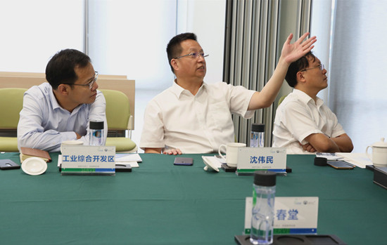 沈偉民副局長(右)和朱春堂總裁交流