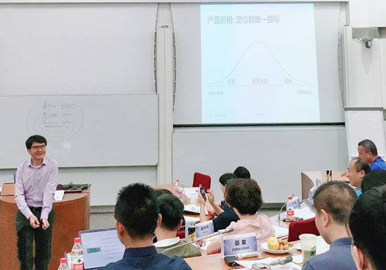 9月4日,王泰元教授及陳炳亮博士將此案例作為教學(xué)案例進(jìn)行研討并講解,并邀請(qǐng)數(shù)十位中歐畢業(yè)校友們重回中歐課堂,在課堂上王泰元教授圍繞產(chǎn)品價(jià)格:定位的唯一指標(biāo)、感知價(jià)值:客戶的需求屬性等方面分享。