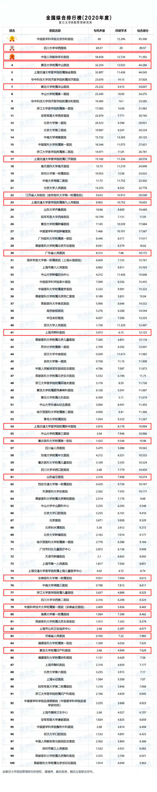 全國共有100家醫(yī)院進(jìn)入“復(fù)旦版中國醫(yī)院綜合排行榜”,這是復(fù)旦大學(xué)醫(yī)院管理研究所作為獨立第三方開展的公益性項目,也是復(fù)旦版中國醫(yī)院排行榜連續(xù)第十二年發(fā)布。