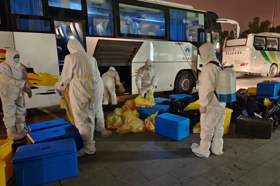 15日夜間,配合院方至各社區(qū)設(shè)立180個(gè)核酸檢測(cè)點(diǎn),并整理核酸采樣物資從醫(yī)院運(yùn)送至各個(gè)檢測(cè)點(diǎn);