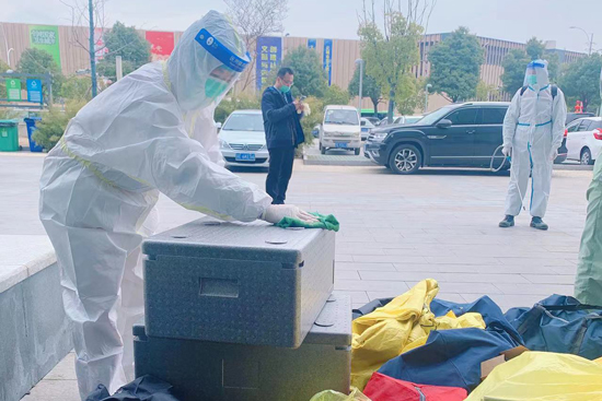 16日晚,項(xiàng)目全員助力500名醫(yī)護(hù)人員的新冠疫情物資打包、發(fā)放工作,確保防疫物資充足;隨即爭(zhēng)分奪秒對(duì)180個(gè)點(diǎn)回收的核酸采樣物資表面進(jìn)行全面消殺,直至17日凌晨四點(diǎn);