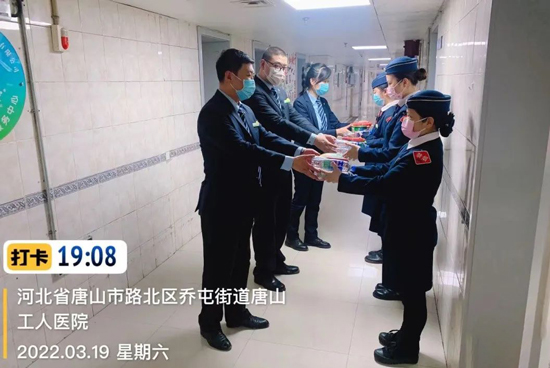 遼寧腫瘤、霸州三院、滄州頤和、唐山工人、唐山中心院等眾項目深入貫徹落實集團黨總支部指示,項目管理人員紛紛帶領團隊給一線員工送去溫暖,并發(fā)放豐富生活物資,確??挂咂陂g每一位員工的營養(yǎng)都能得到保障;對他們積極投入防疫一線,不辭辛苦、忘我工作的精神表示敬意;同時向一線員工傳達集團總部對項目員工的關心和慰問。項目管理團隊表示:項目基層員工奮戰(zhàn)一線,集團與項目管理團隊都將竭盡所能提供關懷與支持,與員工一同并肩作戰(zhàn),共抗疫情。