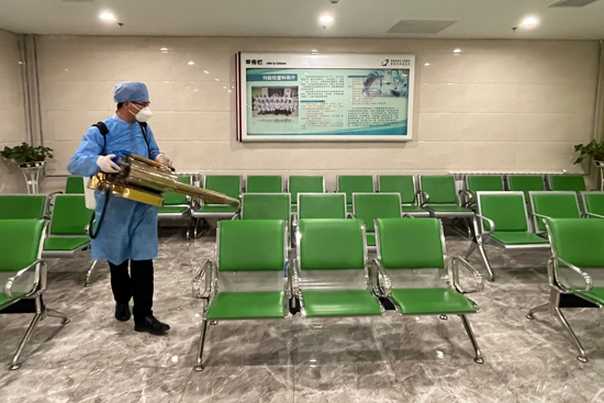 在全市靜態(tài)管理的情況下,醫(yī)院的消殺工作重中之重。青海五院、青海省院項目迅速成立消殺組,果斷做好疫情防控“消防員”,不給病毒任何可乘之機。面對最難啃的“硬骨頭”,消殺全體隊員經(jīng)常24小時待命,每天身穿防護服、肩負噴霧器、手拿噴霧槍,來回穿梭在院方各樓宇之間,對全院環(huán)境進行有效、全面、專業(yè)的消殺。由于防護用具氣密性好,加之穿戴時間長,每次工作完他們都汗流浹背??吹酱蠹疫B日疲勞,身體強壯的隊員總是主動替換體力不支的隊員,背上裝備爬樓消殺。“你們歇歇我們上”,一句樸實的話語體現(xiàn)了團隊員工團結(jié)一心的力量和共同戰(zhàn)“疫”的決心。
