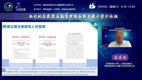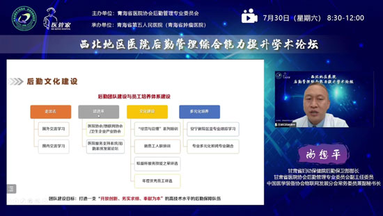 7月30日,由青海省醫(yī)院協(xié)會后勤管理專業(yè)委員會主辦、青海省第五人民醫(yī)院(青海省腫瘤醫(yī)院)承辦的“西北地區(qū)醫(yī)院后勤管理綜合能力提升學(xué)術(shù)論壇”成功舉辦。此次學(xué)術(shù)論壇,采取線上直播的方式,來自上海、天津、甘肅、青海等地知名醫(yī)院后勤管理專家齊聚云端,共同分享全國醫(yī)院后勤管理的最新理論成果和實踐經(jīng)驗,促進(jìn)西部地區(qū)醫(yī)院之間的學(xué)習(xí)與交流。