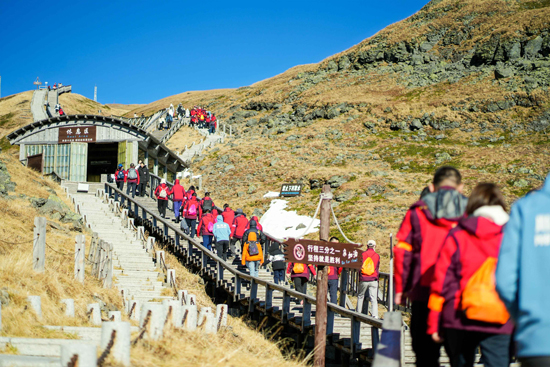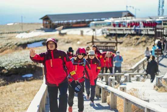 次日,一場勇敢者的征程高燃開啟。一座長白山,一池天池水,是多少人心馳神往的秘境。在探秘長白山的過程中,大家齊心協(xié)力,走過九曲回腸的盤山路,登頂中國海拔最高、積水最深的火山湖—天池,池水的海拔高度2189.1米。一路向前,領(lǐng)略了天池的美不勝收,還飽覽了長白山或清新自然、或宛如仙境、或如夢如幻的別樣景致。