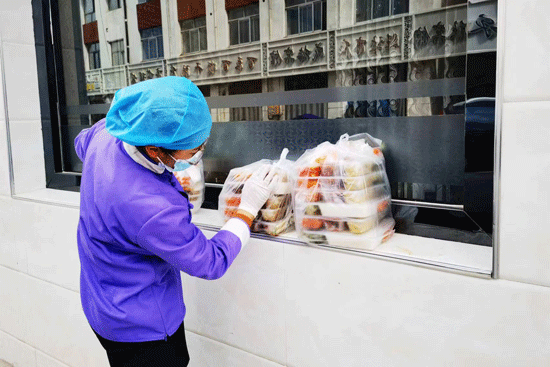 每天清晨6:30,運(yùn)送部的李積華就已準(zhǔn)時(shí)到達(dá)餐廳后廚。為保障每位一線人員吃的及時(shí)、吃上熱食,小李每次都會(huì)認(rèn)真核對(duì)訂餐信息、分裝打包、檢查餐盒的密閉性、分區(qū)裝車。面對(duì)每天多樣、多湯的餐食,小李為防止餐盒晃倒就用手和胳膊緊緊護(hù)住,每次都將熱騰騰的飯菜安全送達(dá),用餐高峰期往返達(dá)到三十幾趟,每天行走上萬步,一趟趟下來手、胳膊、腳都麻木了,但每每收到一線醫(yī)護(hù)人員的一聲“謝謝”時(shí),小李顛簸一天的疲憊也就此消散了,揉揉雙手,再出發(fā)下一站。