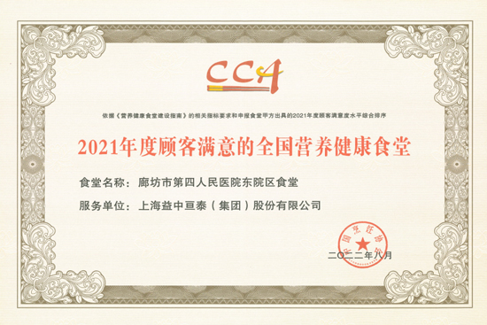 “醫(yī)管家”榮獲“2022年度中國醫(yī)院團餐企業(yè)TOP10”獎項;“醫(yī)管家”廊坊四院餐飲項目榮獲“2021年度顧客滿意的全國營養(yǎng)健康食堂”榮譽!