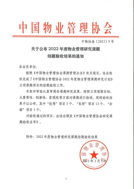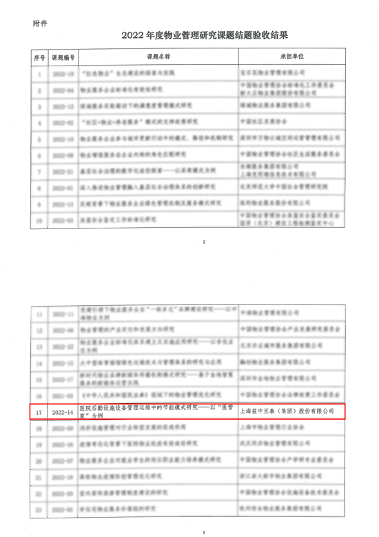 會(huì)上,中國物業(yè)管理協(xié)會(huì)頒發(fā)了《2022年中國物業(yè)管理協(xié)會(huì)研究課題成果驗(yàn)收證書》。多年來,上海益中亙泰集團(tuán)(股份)有限公司(以下簡稱:益中亙泰)始終關(guān)注客戶體驗(yàn)和需求滿足,致力于以標(biāo)準(zhǔn)化提升專業(yè)服務(wù)水準(zhǔn),連續(xù)多年參與中國物業(yè)管理協(xié)會(huì)組織的各項(xiàng)研究課題,并為課題研究提供了大量寶貴的數(shù)據(jù)和實(shí)踐經(jīng)驗(yàn)。