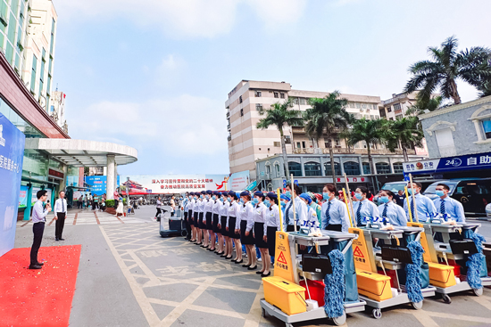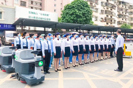 儀式上,百色市人民醫(yī)院黨委副書記、院長黃照河上臺致詞,對“醫(yī)管家”進(jìn)場以來的工作表示高度認(rèn)可,員工精神面貌飽滿,工作狀態(tài)積極,為醫(yī)院和患者提供最優(yōu)質(zhì)的服務(wù)。為美好醫(yī)院建設(shè)、為智慧醫(yī)學(xué)中心發(fā)展、為健康中國戰(zhàn)略貢獻(xiàn)力量。華南公司總經(jīng)理熊永亮代表“醫(yī)管家”感謝院方的支持與配合,砥礪前行,不負(fù)眾望,把百色市人民醫(yī)院建設(shè)成為患者滿意、醫(yī)院滿意、群眾滿意的“高質(zhì)量、高效率、高效益”后勤服務(wù)項目。