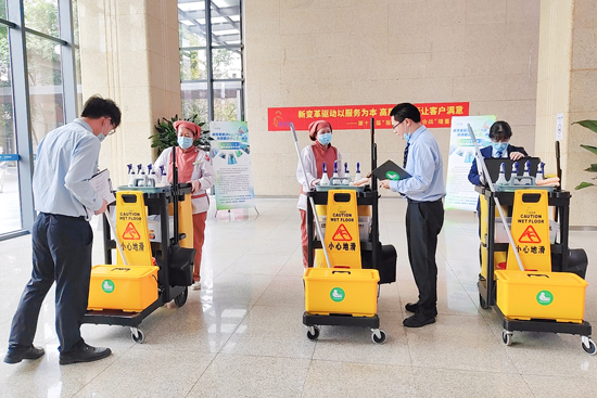 環(huán)境管理條線,圍繞日常保潔、專項保潔、綠化服務(wù)進行技能競賽,致力于為醫(yī)護人員及患者打造一個舒適的工作、就醫(yī)環(huán)境;