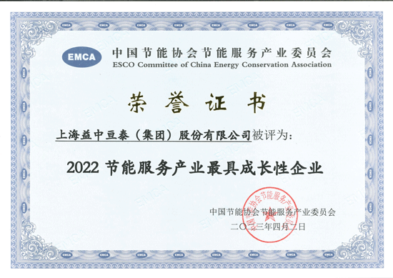 ·益中亙泰榮獲“2022節(jié)能服務(wù)產(chǎn)業(yè)最具成長性企業(yè)”