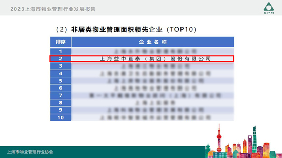 近期,上海市物業(yè)管理行業(yè)協(xié)會第七屆理事會第二次全體會議順利召開,會上發(fā)布了《2023上海市物業(yè)管理行業(yè)發(fā)展報告》,同時公布了“2023年上海物業(yè)服務(wù)綜合百強企業(yè)”和“2023上海市物業(yè)服務(wù)單項領(lǐng)先企業(yè)”名單。“醫(yī)管家”憑借穩(wěn)健發(fā)展的企業(yè)綜合實力、精益求精的運營管理、領(lǐng)先的智慧服務(wù)成果再獲行業(yè)認可,榮獲醫(yī)院類管理面積TOP1,并連續(xù)多年蟬聯(lián)上海市物業(yè)服務(wù)綜合百強企業(yè)。