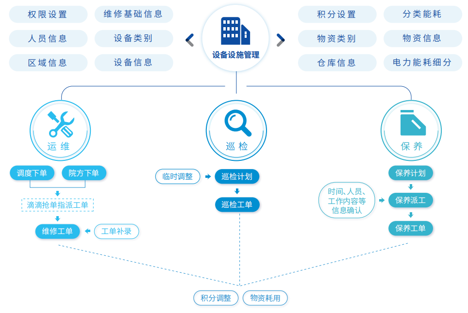 智慧化系統(tǒng)可以協(xié)助醫(yī)院后勤管理部門優(yōu)化設(shè)備巡檢和維修工作。后勤管理團(tuán)隊借助智慧化技術(shù)實現(xiàn)設(shè)備巡視工作電子化、信息化、標(biāo)準(zhǔn)化,從而減少因人為因素導(dǎo)致的醫(yī)院設(shè)備錯檢或漏檢問題,保障醫(yī)院設(shè)備高效、低故障運(yùn)行。當(dāng)有設(shè)備需要維修時,醫(yī)院后勤管理部門以運(yùn)維工單為主線,通過智慧運(yùn)維平臺對設(shè)備維修全過程進(jìn)行追蹤與記錄,做到設(shè)備維修質(zhì)量可評價、可測量、可控制、可追溯,使運(yùn)維流程得到優(yōu)化,并盡可能規(guī)避物資浪費(fèi)問題。從而實現(xiàn)維修工單的提報、任務(wù)分配、執(zhí)行及驗收四項重要環(huán)節(jié)的閉環(huán)式管理。
