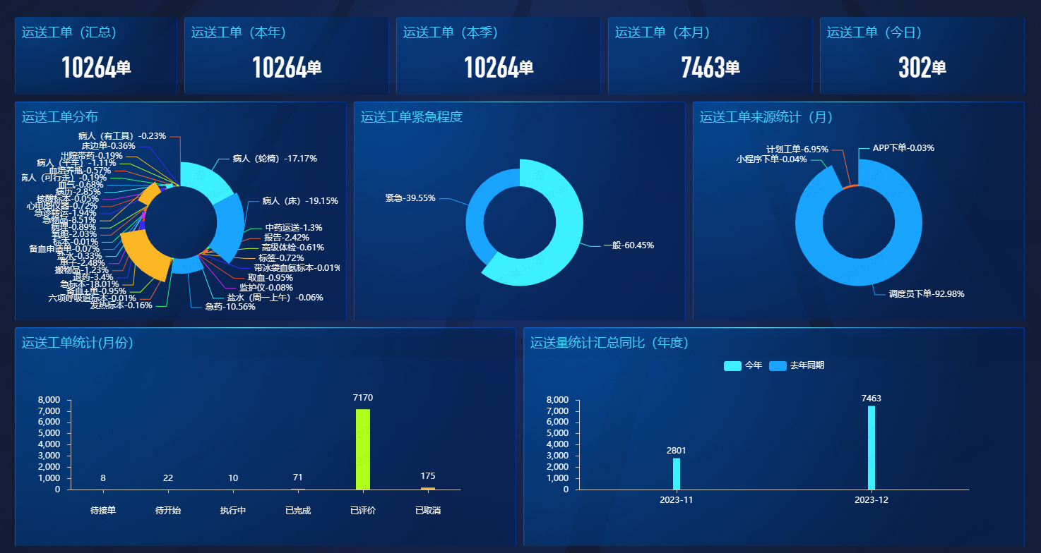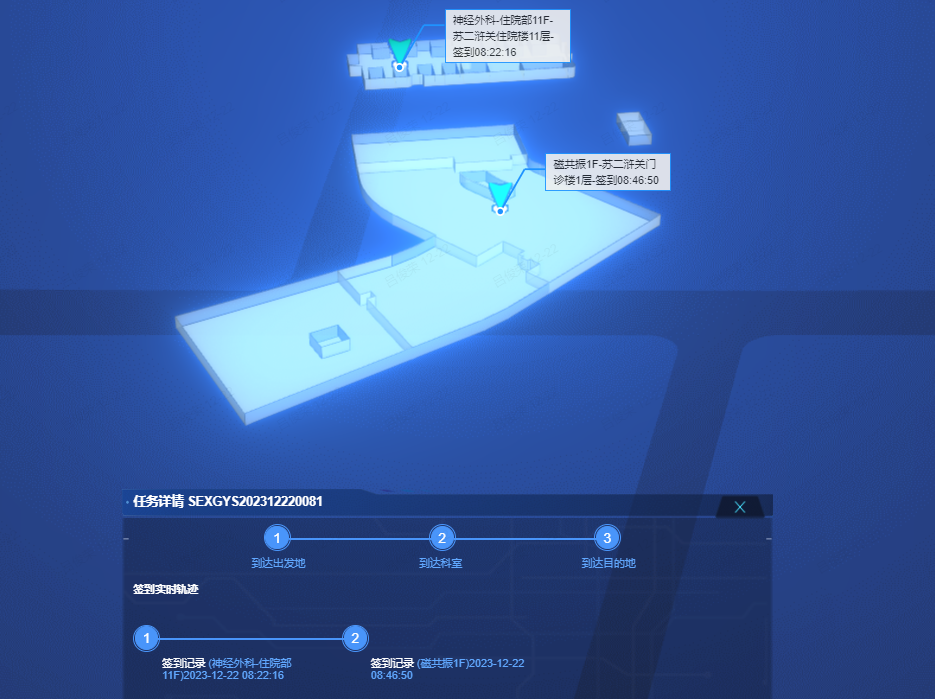 可在每一個(gè)運(yùn)送環(huán)節(jié)通過掃碼拍照,上傳當(dāng)前運(yùn)送進(jìn)度,運(yùn)送工單軌跡結(jié)合BIM模型展現(xiàn),便于系統(tǒng)及時(shí)更新任務(wù)完成數(shù)據(jù),形成閉環(huán)管理。系統(tǒng)上線后一個(gè)月內(nèi)安全閉環(huán)了11000+運(yùn)送服務(wù)工單,工單完成率保持在100%,大大保障了醫(yī)院的高效運(yùn)營。