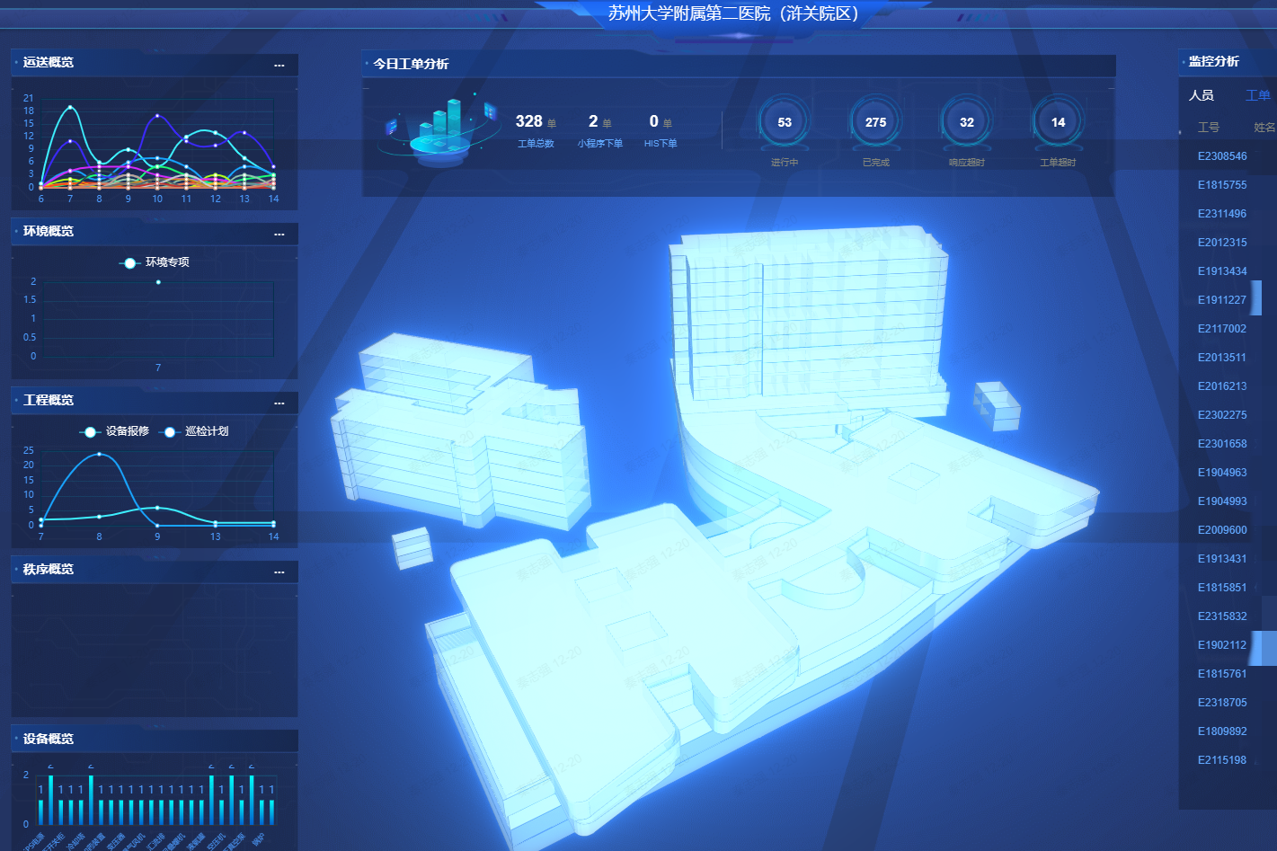 系統(tǒng)上線后涵蓋了環(huán)境管理、中央運(yùn)送、工程管理等多條線服務(wù)內(nèi)容,在全院共設(shè)立226個(gè)設(shè)備和科室數(shù)據(jù)點(diǎn)位,為蘇州大學(xué)附屬第二醫(yī)院(滸關(guān)院區(qū))構(gòu)建起人與空間、人與服務(wù)、服務(wù)與空間的三角模型,錄入1100+條維修物料信息,并可實(shí)現(xiàn)數(shù)據(jù)多源共享,支持WEB、APP、平板PAD、微信小程序等多端數(shù)據(jù)同步,實(shí)現(xiàn)醫(yī)院科室、調(diào)度中心、服務(wù)人員、患者等多方的信息互通互聯(lián),為醫(yī)院提供管理決策依據(jù),助力醫(yī)院更高水平的建設(shè)。