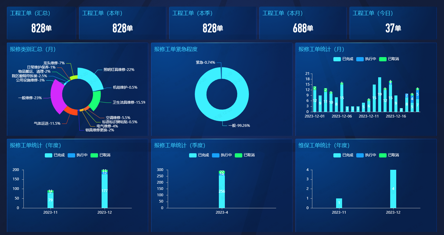 針對(duì)醫(yī)院環(huán)境管理工作量大且范圍較廣的特點(diǎn),把專項(xiàng)管理計(jì)劃納入系統(tǒng)中,周期性專項(xiàng)工作錄入系統(tǒng)后,實(shí)現(xiàn)到期提醒,讓專項(xiàng)保潔的員工提前規(guī)劃,按時(shí)開展工作,并將環(huán)境管理工單分為計(jì)劃工單和臨時(shí)工單兩大類,把日常保潔、專項(xiàng)保潔歸類為計(jì)劃工單,將周期性環(huán)境管理工作錄入系統(tǒng),便于員工提前規(guī)劃。系統(tǒng)上線后,總體服務(wù)工單完成時(shí)長下降20%,大大提高服務(wù)效率。