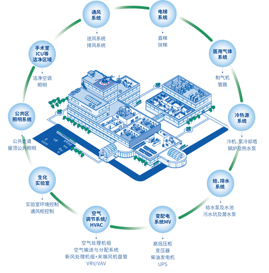 在公共建筑中,醫(yī)院建筑能耗總量大,能耗強(qiáng)度高,并且隨著患者及醫(yī)護(hù)人員對就醫(yī)環(huán)境的要求日漸增長,醫(yī)院規(guī)模日趨擴(kuò)大,主要用能設(shè)備的不斷更新、增加,導(dǎo)致醫(yī)院能耗持續(xù)上漲。近幾年,在國家相關(guān)政策的引導(dǎo)下,綠色低碳醫(yī)院理念深入人心,全國各地醫(yī)院紛紛運(yùn)用信息化、智能化管理手段,統(tǒng)籌安排,分步實(shí)施,降低設(shè)備運(yùn)行能耗,提高醫(yī)院的能源使用效率。