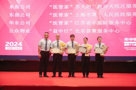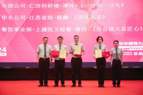 榮耀加冕,榜樣力量。 為樹立典型、表彰先進,激發(fā)全體員工開拓進取、蛻變前行,對2024年上半年第一戰(zhàn)區(qū)表現(xiàn)突出、業(yè)績顯著的團隊和個人進行表彰與頒獎。相關(guān)部門領(lǐng)導(dǎo)分別宣讀“2024年度精致服務(wù)項目獎”、“2024年度追求卓越項目獎”、“2024年度最佳工作環(huán)境獎”以及2024年度集團技能競賽團隊管理、環(huán)境管理、運送服務(wù)、秩序維護、輔醫(yī)服務(wù)等項目服務(wù)獲獎名單并為代表們頒發(fā)證書。