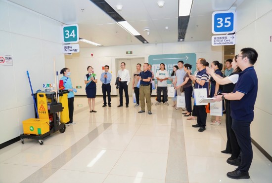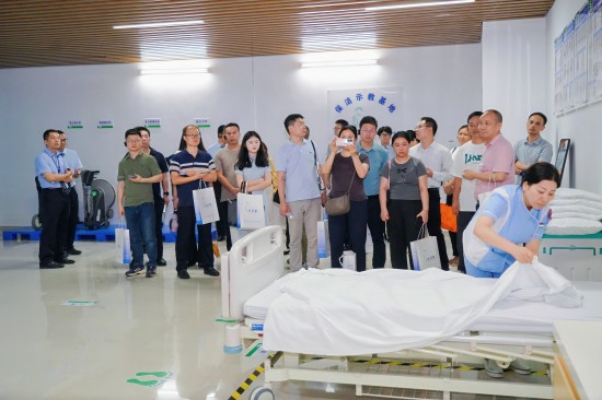 會后,專家一行赴深圳大學(xué)附屬華南醫(yī)院開展精細化后勤管理實地研學(xué)。在院方的指導(dǎo)、“醫(yī)管家”項目團隊的精心組織下,依次參訪服務(wù)操作培訓(xùn)基地與后勤服務(wù)中心兩大核心場景。通過專業(yè)解說、實景演示及互動研討,沉浸式體驗醫(yī)院的精益化流程管控、“醫(yī)管家”后勤一站式服務(wù)的貼心高效、數(shù)據(jù)可視化醫(yī)院智慧后勤解決方案的先進理念,為今后醫(yī)院的后勤管理工作的開展與創(chuàng)新提供了寶貴的借鑒與啟示。