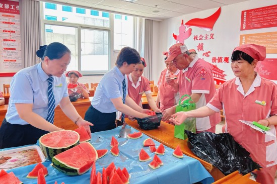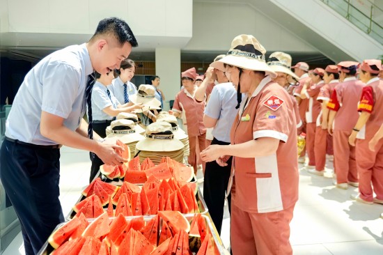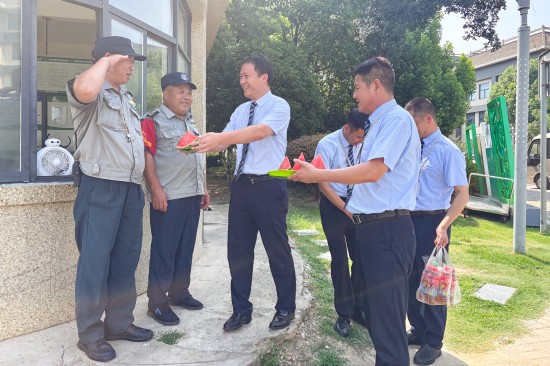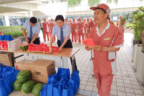 同時為員工們送去清涼物資,將一份份滿載著關(guān)懷的“清涼大禮包”遞到一線員工的手中。朱總在項目現(xiàn)場叮囑:“大家務(wù)必做好自我防護,科學(xué)安排作息,確保安全度夏!”一句句貼心的關(guān)懷,一份份清涼的問候,正轉(zhuǎn)化為護航健康的堅實屏障,更凝聚成全員戰(zhàn)高溫、保服務(wù)的澎湃動能。