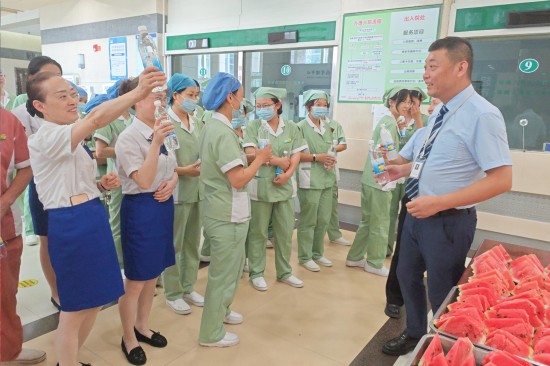 炎炎夏日,驕陽似火。面對全國多地持續(xù)的“烤”驗,有這樣一群人,他們不畏“暑”“烤”,依然堅守在項目服務(wù)一線。為關(guān)懷在高溫下堅守的一線員工,切實保障他們的身體健康與安全,“醫(yī)管家”深入開展“夏送清涼”慰問活動,將絲絲關(guān)愛織成一片綠蔭,為他們撐起清涼傘,讓他們深切感受到來自公司“大家庭”的濃濃關(guān)懷。