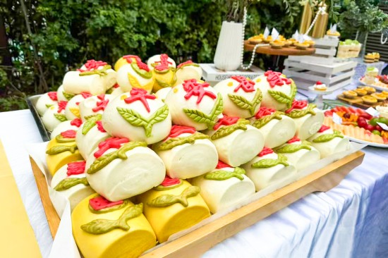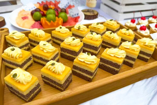 當序曲奏響,主角們紛紛登場,一起譜寫一首舌尖交響曲。低糖低鹽的精準配比,激發(fā)食材本身鮮香。經過“選料—腌味—定形—脆皮—烤焙”5大工序,“皮如琥珀、肉似瓊脂”的烤乳豬,“閃亮”登場;看似相同的面點,卻有著不同的驚喜,每一枚上都精心印刻著吉祥一字,吃下的是美味,收獲的是“平安喜樂,福壽雙全”;色彩繽紛的茶歇,采用減糖安心的動物奶油制作,松軟到入口即化。