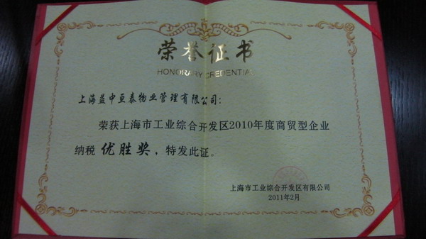 2011年2月25日下午,上海市工業(yè)綜合開發(fā)區(qū)召開2010年度商貿(mào)型企業(yè)表彰大會,對本開發(fā)區(qū)的納稅大戶及快速成長性企業(yè)給予表彰和鼓勵。