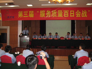 2010年7月16日下午,公司“第三屆服務(wù)質(zhì)量百日會戰(zhàn)”總結(jié)大會在浙江臨安的阿里山大酒店的多功能會議廳隆重召開。