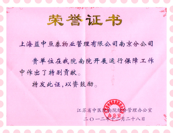 我司南京分公司獲江蘇省中醫(yī)院表揚