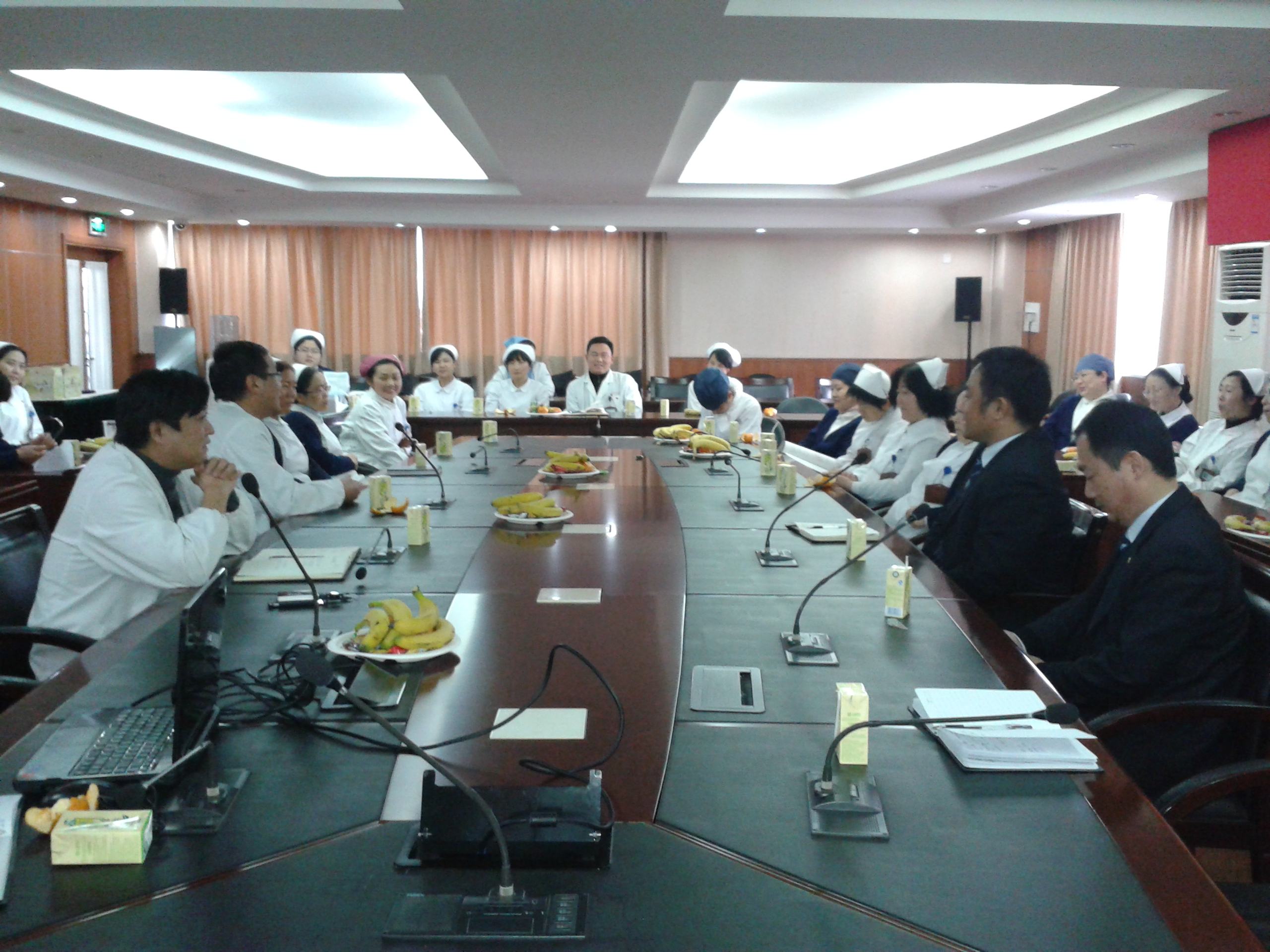 2013年末,在醫(yī)院行政樓501會(huì)議室召開(kāi)了2013年度工作總結(jié)座談會(huì),陳國(guó)強(qiáng)院長(zhǎng)、林雁冰部長(zhǎng)、護(hù)理部正副主任、病區(qū)所有護(hù)士長(zhǎng)、公司副總經(jīng)理宋天駿,運(yùn)作總監(jiān)易飛及項(xiàng)目管理人員參加了座談。