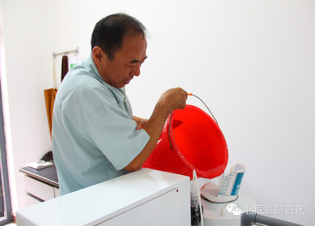 今天,小編終于見到主人公的廬山真面目了,他就是我們醫(yī)院物業(yè)("醫(yī)管家")污水處理站的蔡學(xué)詩師傅。