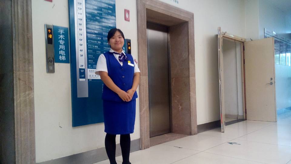 圖為“醫(yī)管家”電梯員工嚴(yán)正以待,迎接來(lái)訪二級(jí)醫(yī)院領(lǐng)導(dǎo)。
