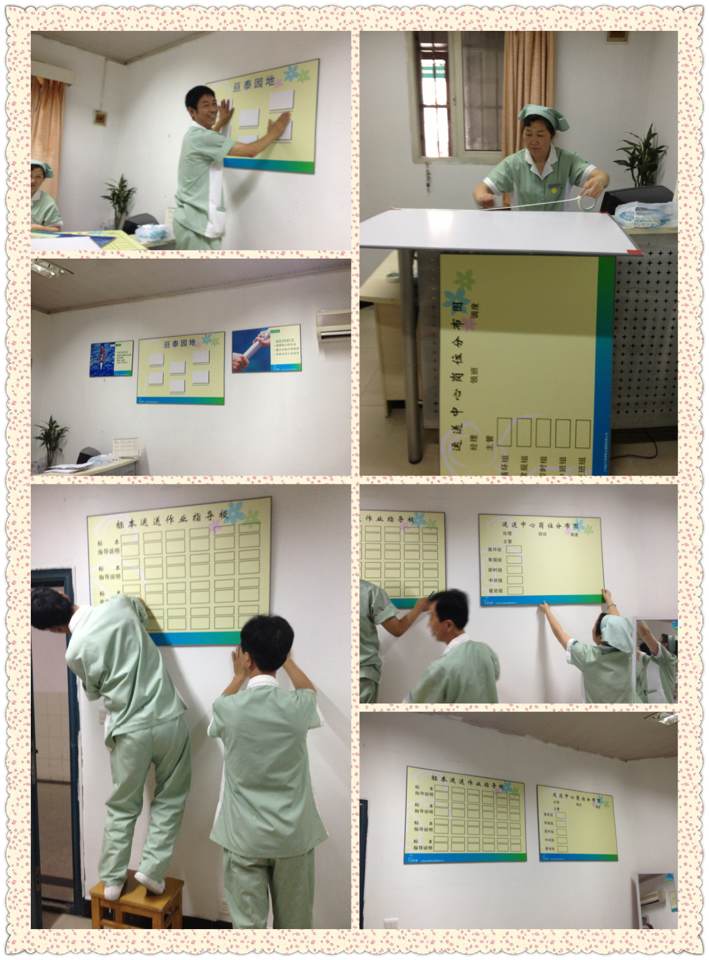 這時(shí)的我暗暗做了個(gè)決定,要為員工和自己創(chuàng)造一個(gè)良好的工作環(huán)境,它不需要多華麗但一定要“整潔而溫馨”。就這樣,在李經(jīng)理的幫助下,我們定制了新的“亙泰園地”、作業(yè)指導(dǎo)板和企業(yè)文化展板。沒有涂料怎么辦?恰遇醫(yī)院裝修,我們又借來(lái)了涂料,準(zhǔn)備了工具,這時(shí),運(yùn)送中心的史忠平師傅自告奮勇的提出由他來(lái)粉刷,那時(shí)正值酷暑季節(jié),幾分鐘的時(shí)間汗水已完全浸濕了他的衣服,但大家還是積極參與進(jìn)來(lái),有的刷漆,有的扶凳子,還有的幫助測(cè)量距離貼展板……