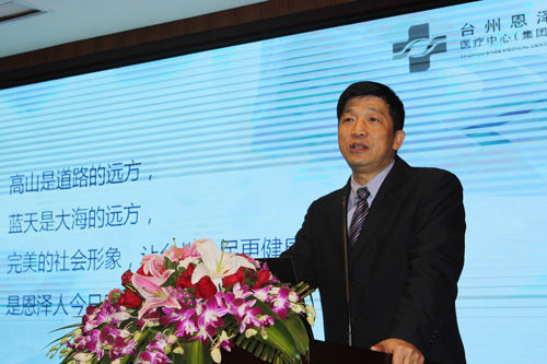 臺(tái)州恩澤醫(yī)療中心(集團(tuán))主任、恩澤醫(yī)院院長(zhǎng)陳海嘯歡迎兄弟醫(yī)院同行的到來,并作總結(jié)講話。他說,今天是恩澤大喜的日子,十年磨一劍,恩澤醫(yī)院正式開業(yè)運(yùn)營(yíng)。在座的大家都為了提高臺(tái)州醫(yī)療衛(wèi)生水平而努力,今天邀請(qǐng)大家來的目的就是為了讓大家看看我們的醫(yī)院,給我們提一提建議。“讓我們?yōu)榕_(tái)州醫(yī)療的明天,為了醫(yī)務(wù)人員的尊嚴(yán),為臺(tái)州老百姓的健康一起奮斗?!标惡[再次感謝恩澤一路走來,大家的關(guān)心和支持。