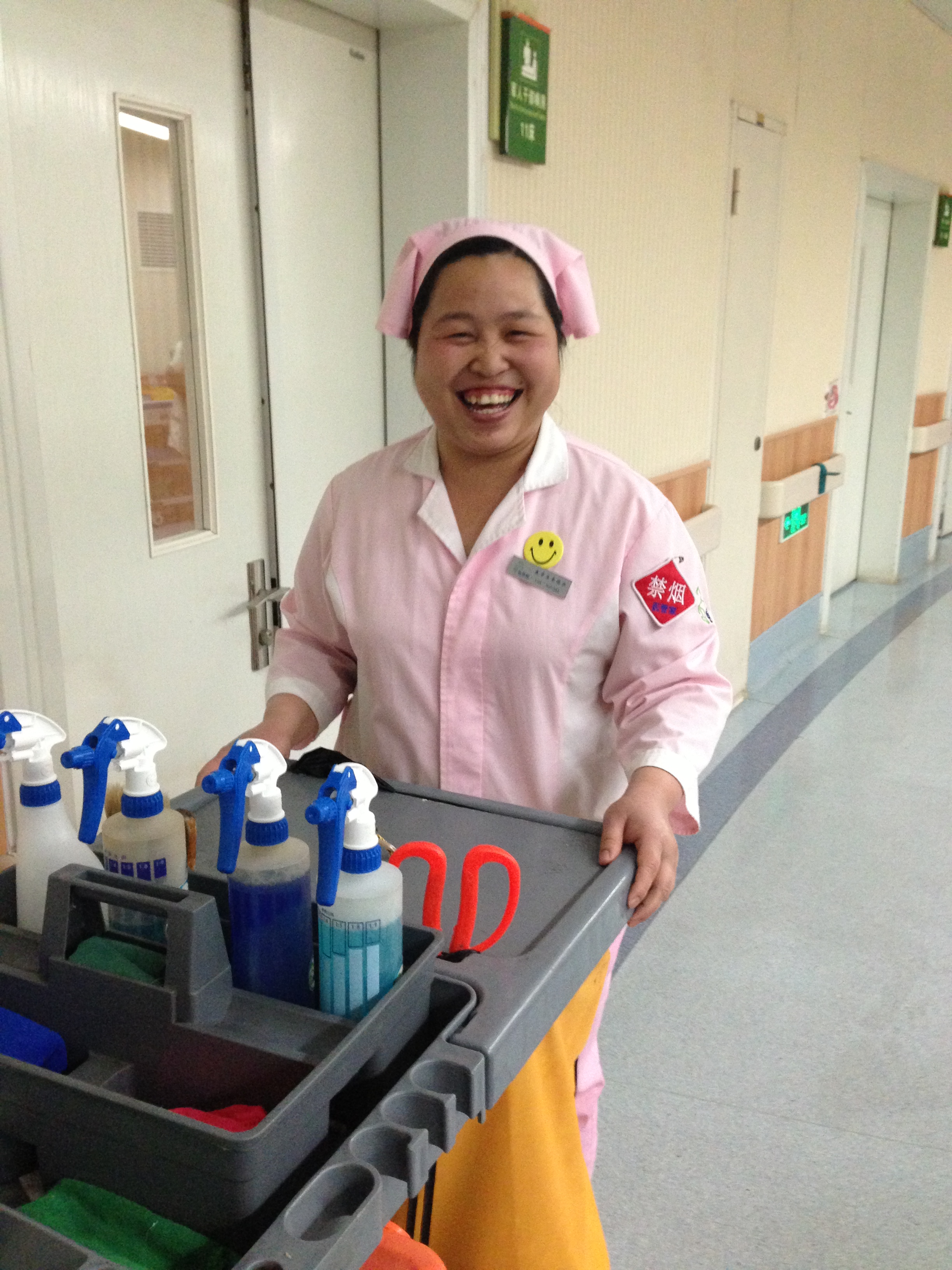 她體形偏胖,愛笑,走路有點(diǎn)慢,她叫啊胖。這是我對林姐最初的印象。記得剛來這個科的時候,那時候是有個患者吐了,到處找保潔阿姨,不知道她什么名字,到處喊保潔阿姨,然后就聽有人喊啊胖,接著看到她帶著笑容和一堆清潔消毒的‘家伙’出現(xiàn)了。。。