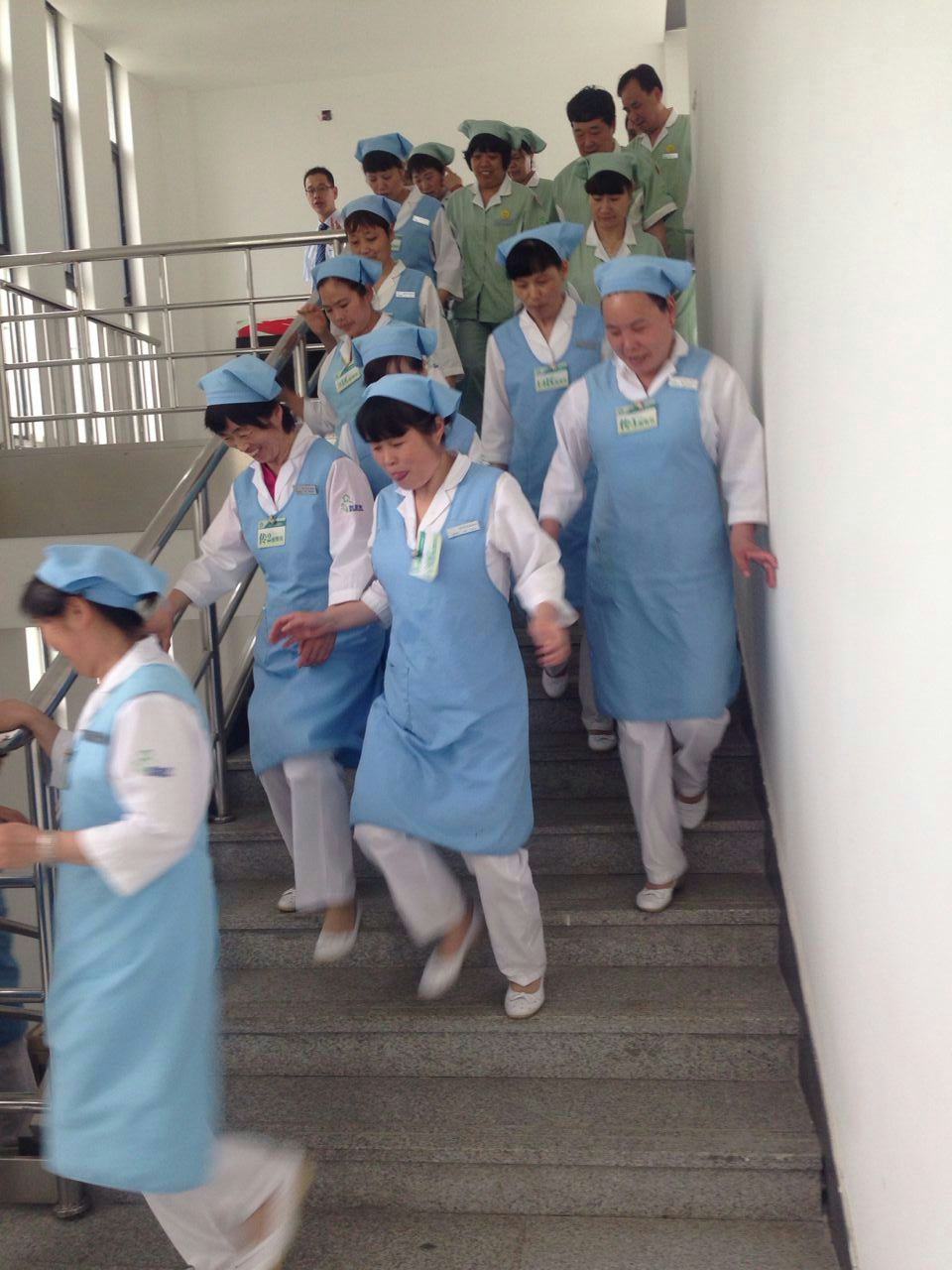最后,在項目精心組織下,全體員工分部門在醫(yī)技樓消防梯進(jìn)行了火情發(fā)生后的現(xiàn)場處置、報警及安全疏散人員的消防演練。