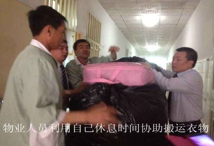 與我們同去搬運的有運送部主管沈海洲、保潔部經理朱小軍,還有院方代表王明霞老師、護理部陳護士長。我們先到門診大廳服務臺找來一輛平車,然后推著車子來到一間倉庫,打開房門一看,里面堆滿了已裝好袋子的救災衣物,大袋子重在百斤以上,小袋子也有幾十斤重。只見沈海洲主管和朱小軍經理,一馬當先,搶在前面,雙手使勁搬起一袋就往車子上裝,我們倆也緊跟其后,干了起來。能一人拿動的就一人搬,一人拿不動的就兩人抬,一會就裝滿一車,我們推著物資車先是送到門前停車場,再把物資二次裝到箱式汽車上。就這樣不停的裝平車,再裝汽車,來回往返,經過大家近2個多小時搬運,終于將救災物資全部裝運完。再看沈主管、朱經理和我,大家已是累得滿頭大汗,衣服都被汗水浸透,可是沒有一個人說累,臉上卻掛滿了笑容。能和醫(yī)院一起,為災區(qū)人民出一份力,獻一份愛心,做一次貢獻。為此而感到光榮和幸福,愿我們今后能多參加這樣有愛心、有意義的活動。