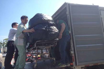 在艷陽高照的紅五月里,有一天午間休息,我和同事兼師傅,突然接到項目經理盛春誼和院方領導代表王明霞老師的指示,要運送部派兩名員工去幫助院方醫(yī)護人員運送捐贈的救災衣物,我有幸參加了。